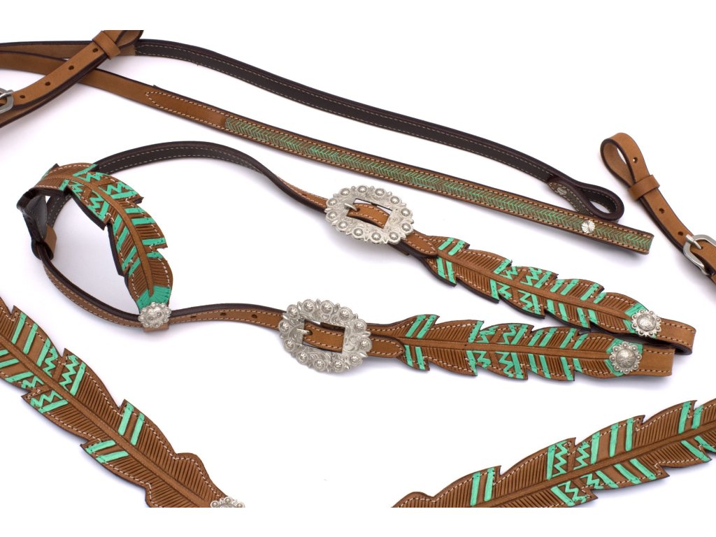 Zeleny set,jednouška uzda+poprsák+dvojdielne oťaže,velkost Cob/Full.